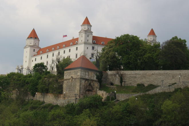 Мы без труда ориентируемся среди узких улочек, и вскоре оказываемся в нужном месте, солнце как раз клонится к линии горизонта, а перед нами открылся прекрасный городской пейзаж: весь «альтштадт» (старый город) окружен рвом и крепостной стеной с многочисленными башнями, а крыши домов покрыты красной черепицей. Косые лучи солнца делают раскинувшуюся перед нами панораму еще более фантастической; не покидает ощущение того, что мы вмиг очутились в средневековье, и вот-вот по булыжникам мостовых заскачут конные экипажи, и всадники, закованные в латы, сменят друг друга в карауле перед замком короля, в пивных начнется веселое застолье, а знать приступит к шикарной вечерней трапезе высоко над городом, в стенах древнего замка.