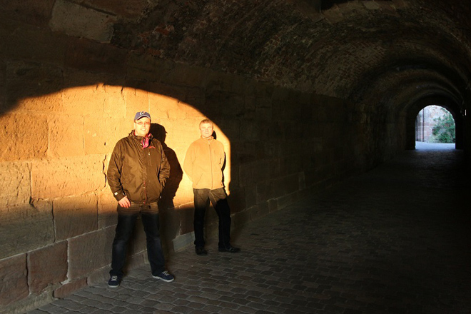 Без труда находим ближайшую станцию метрополитена, садимся в состав и, минуя несколько остановок, уже через 10 минут выходим в самом центре старого Нюрнберга! Время близится к закату, шпили соборов и черепичные крыши приобретают ярко-красный оттенок, а мы шагаем по старинным улочкам Нюрнберга среди великолепных зданий, построенных еще во времена королей, много веков назад. Город прекрасен в это время суток и, вспоминая по своей предыдущей поездке сюда (в конце 90-х я ездил в Германию с курсом лекций, которые как раз читал в Нюрнбергском университете, корпуса которого находятся в г. Эрланген), предлагаю спутникам посмотреть на панораму старого города со смотровой площадки замка Кайзера (короля).